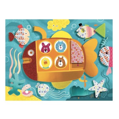 contenu : 4 tableaux illustrés (21 x 28 cm), 8 planches de mousses autocollantes et prédécoupées et un livret explicatif en couleurs pour accompagner pas à pas l'enfant dans sa création.