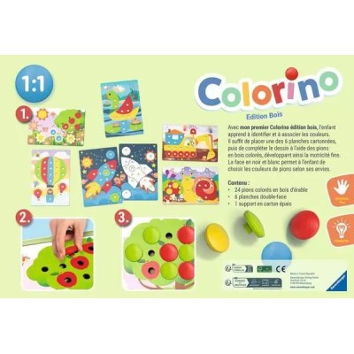 Toucher, manipuler, construire et déconstruire permet aux petits de mieux s'approprier les tailles, les formes et les couleurs. Avec cette édition bois, le premier jeu des couleurs devient plus éco-responsable ! Il est encore plus agréable de manipuler les gros pions colorés et de les fixer sur le grand support. Les 6 fiches recto-verso leur offrent la possibilité de suivre le modèle, ou de créer des combinaisons de couleur en toute liberté.
