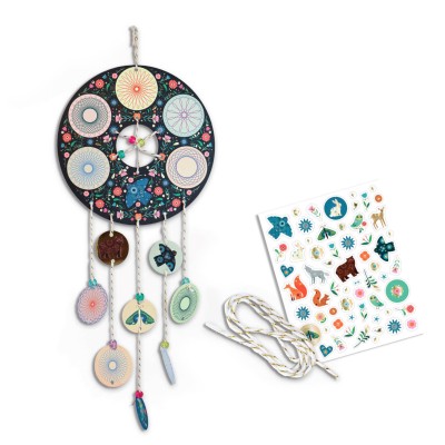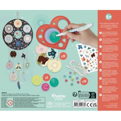 Un attrape-rêves à remplir de spirales magiques et à monter à l'aide d'un joli fil doré, d'une dizaine de perles pailletées et d'une réglette pour créer des spirales à l'infini.