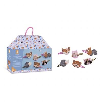 Ce set propose aux petits artistes de réaliser et de porter ensuite leurs créations ! Il suffit d'un peu de patience et de minutie pour réaliser ses propres accessoires, et porter fièrement : une renarde, une chouette, un hérisson, un ours, un raton-laveur, et un écureuil.