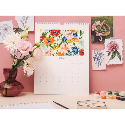 Un joli calendrier mural à peindre au fil des mois, façon peinture au numéro. Un projet créatif doux et poétique pour rythmer l’année 2026… ou à offrir déjà tout peint !