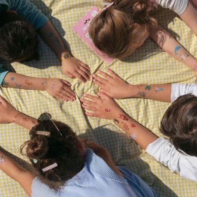 Youpi des Goodies fun ! Voilà une pochette de tatouages qui va faire plaisir à plus d'un enfant ! Avec ses 40 amusants tatouages California Dream à effet paillettes néon rose, plongez-les dans un univers rétro girly et colorés pour les fêtes, anniversaires, goûters et autres party time ! Les adultes vont être jaloux !