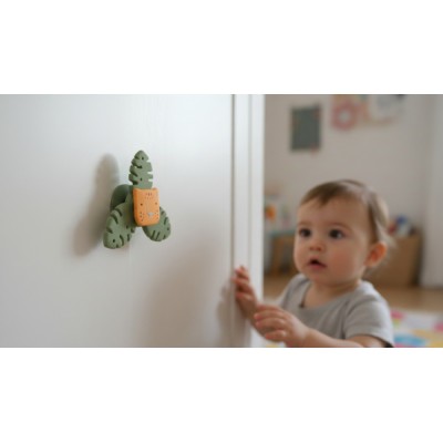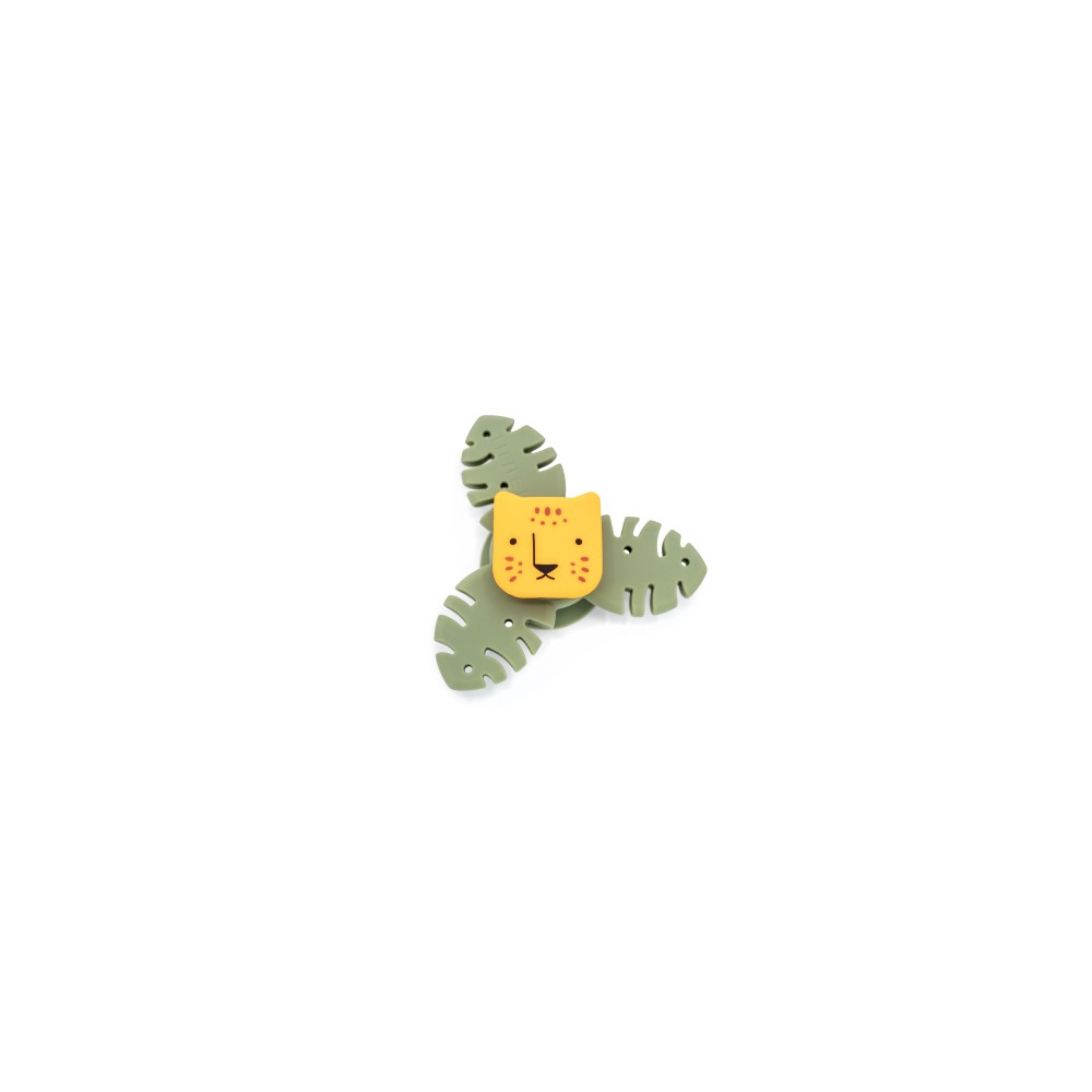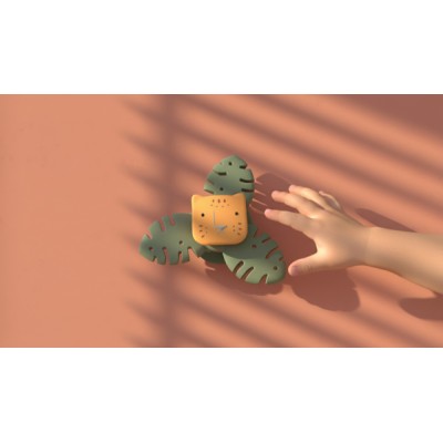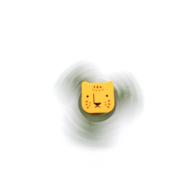 Toupie sur ventouse avec une jolie tête de tigre et des fougères.