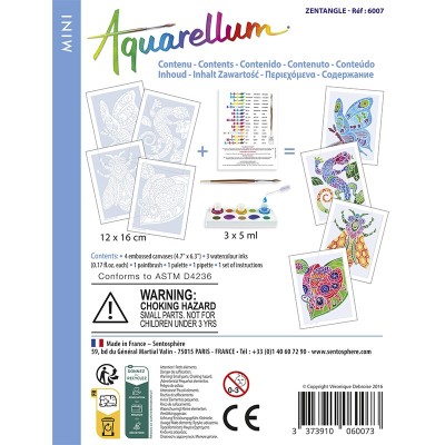 Grâce à ce mini coffret créatif, découvrez l'art de la peinture aquarelle en réhaussant de couleurs, sans pouvoir dépasser, ces quatre minis tableaux.