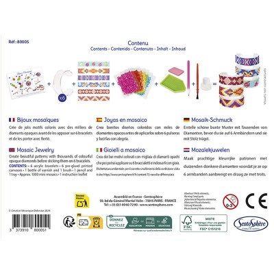Ce coffret créatif complet vous propose de réaliser 6 magnifiques bracelets en plexiglas, à personnaliser grâce à un canevas de mini mosaïques opaques.