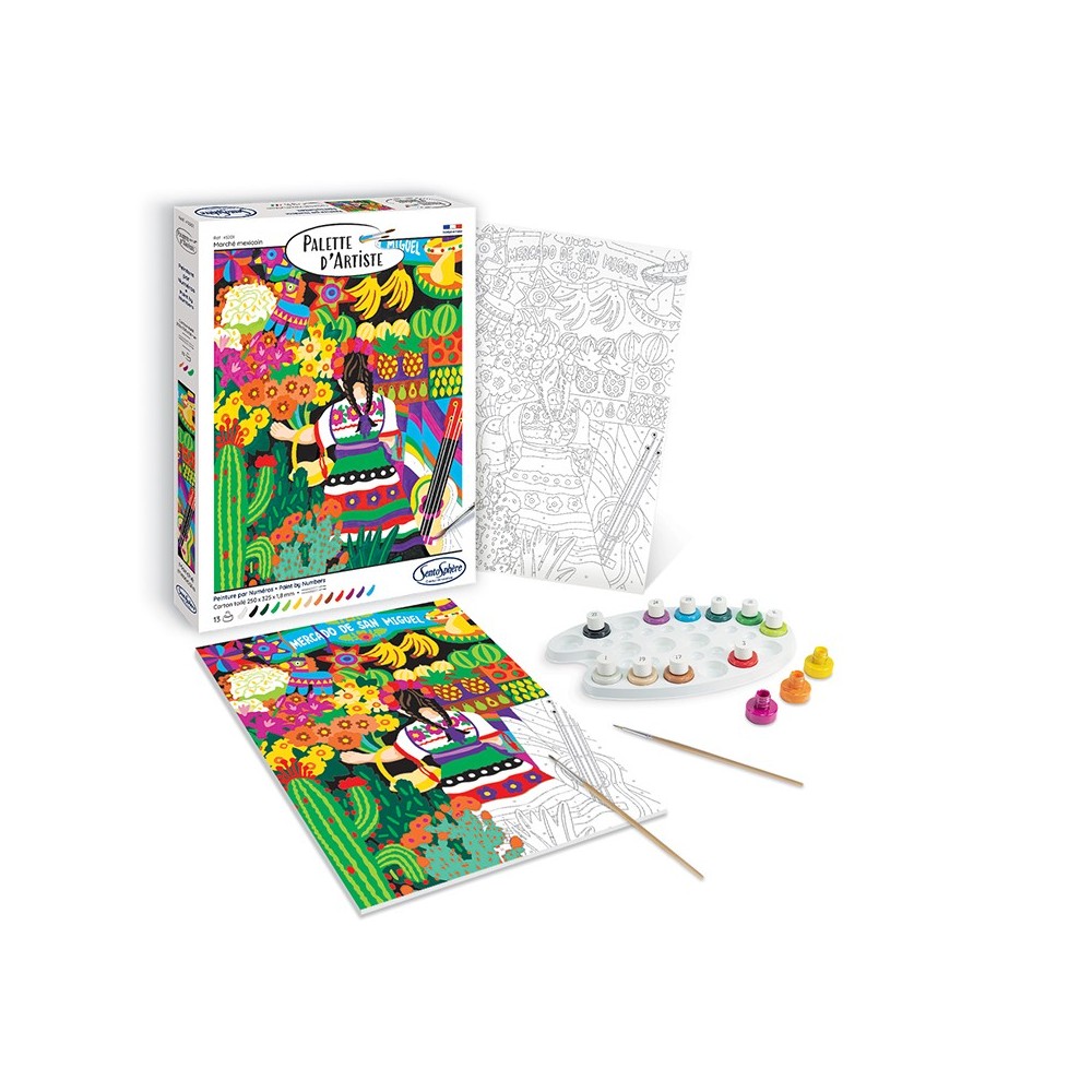 Laissez-vous transporter au cœur d’un marché mexicain avec cette peinture par numéros éclatante. Suivez les numéros pour révéler, pas à pas, une scène colorée et dépaysante.