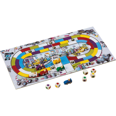 Frâce à des règles du jeu faciles à comprendre, cette turbulente course de voitures s'adresse à toute la famille. Alors, montez dans les voitures de course et lancez-vous!