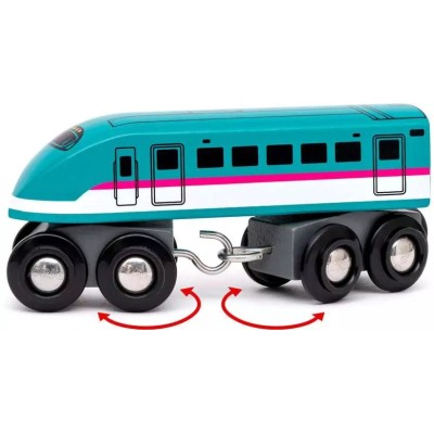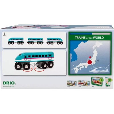 Explorez les merveilleuses contrées du Japon à bord du 36086 Train Shinkansen Series E5 Hayabusa, de la collection des Trains du Monde. Ce train à grande vitesse en bois comprend deux locomotives et une voiture de voyageurs aux couleurs vives, chacune dotée de huit roues sur deux bogies. Atteignant jusqu’à 320 km/h, le Hayabusa est le train le plus rapide du Japon.