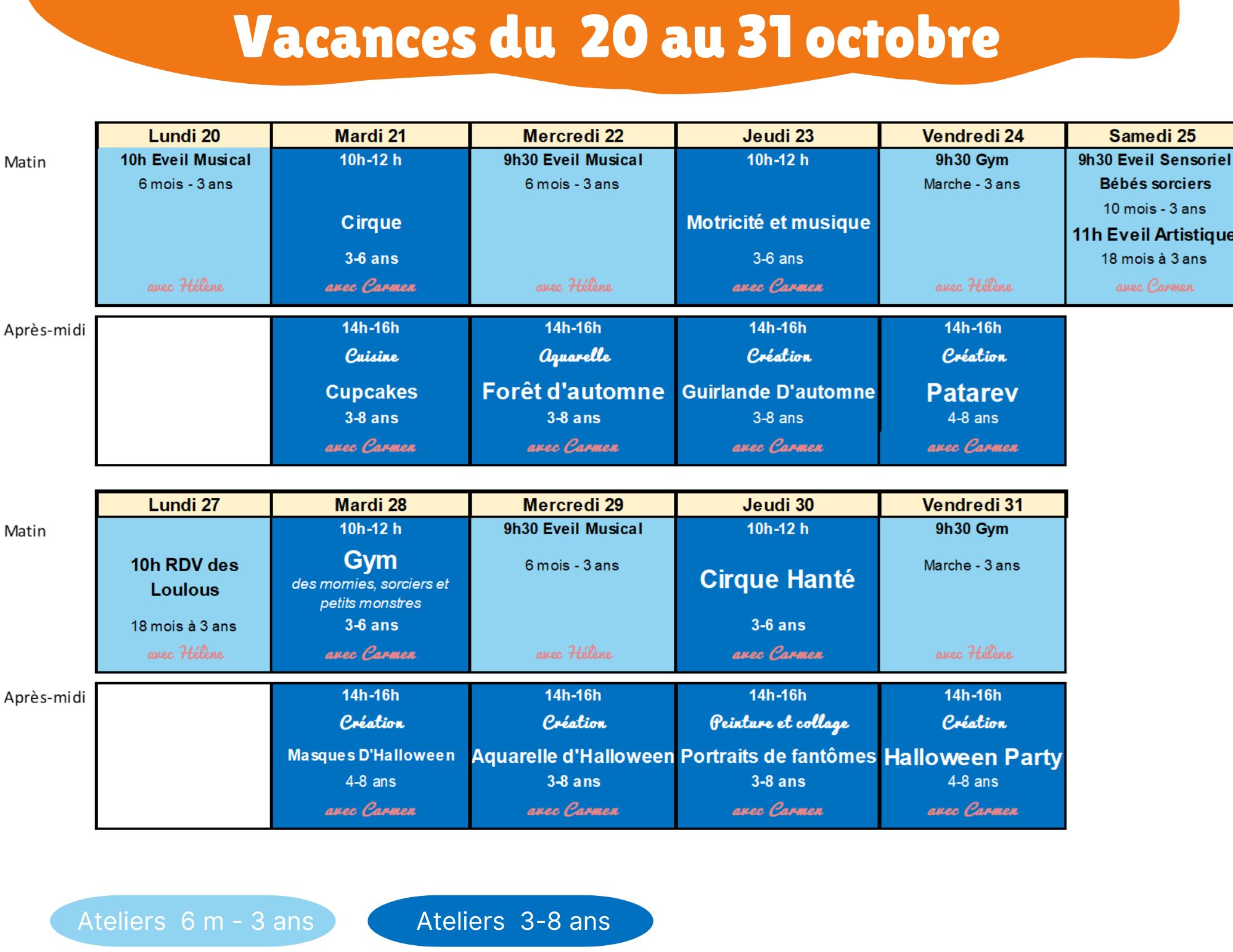Les ateliers se remplissent vite alors n’hésitez pas à nous contacter dès que possible.