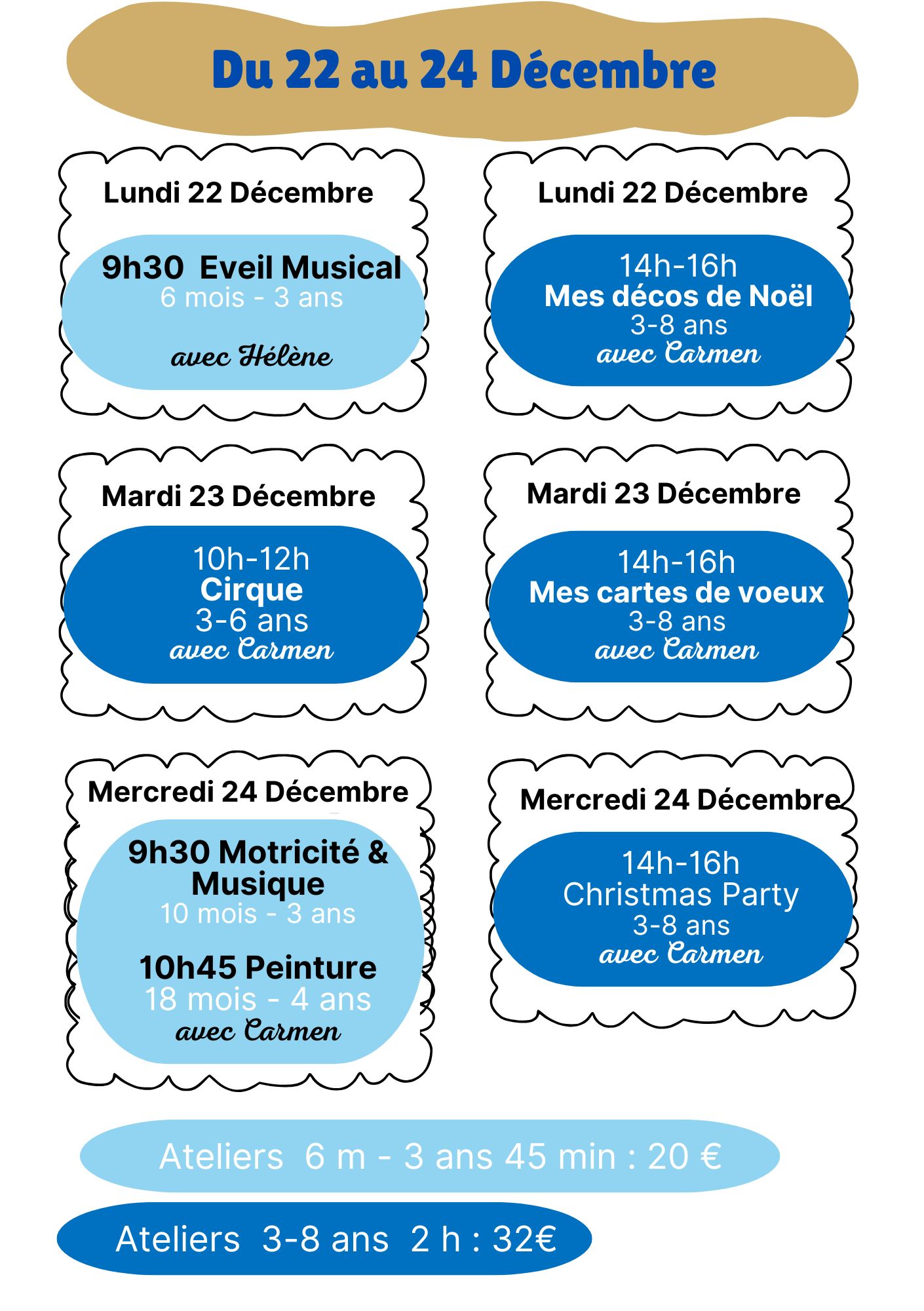 - Motricité et Musique : un atelier à partir de 10 mois composé d’un temps de parcours puis d’une découverte de Noël.